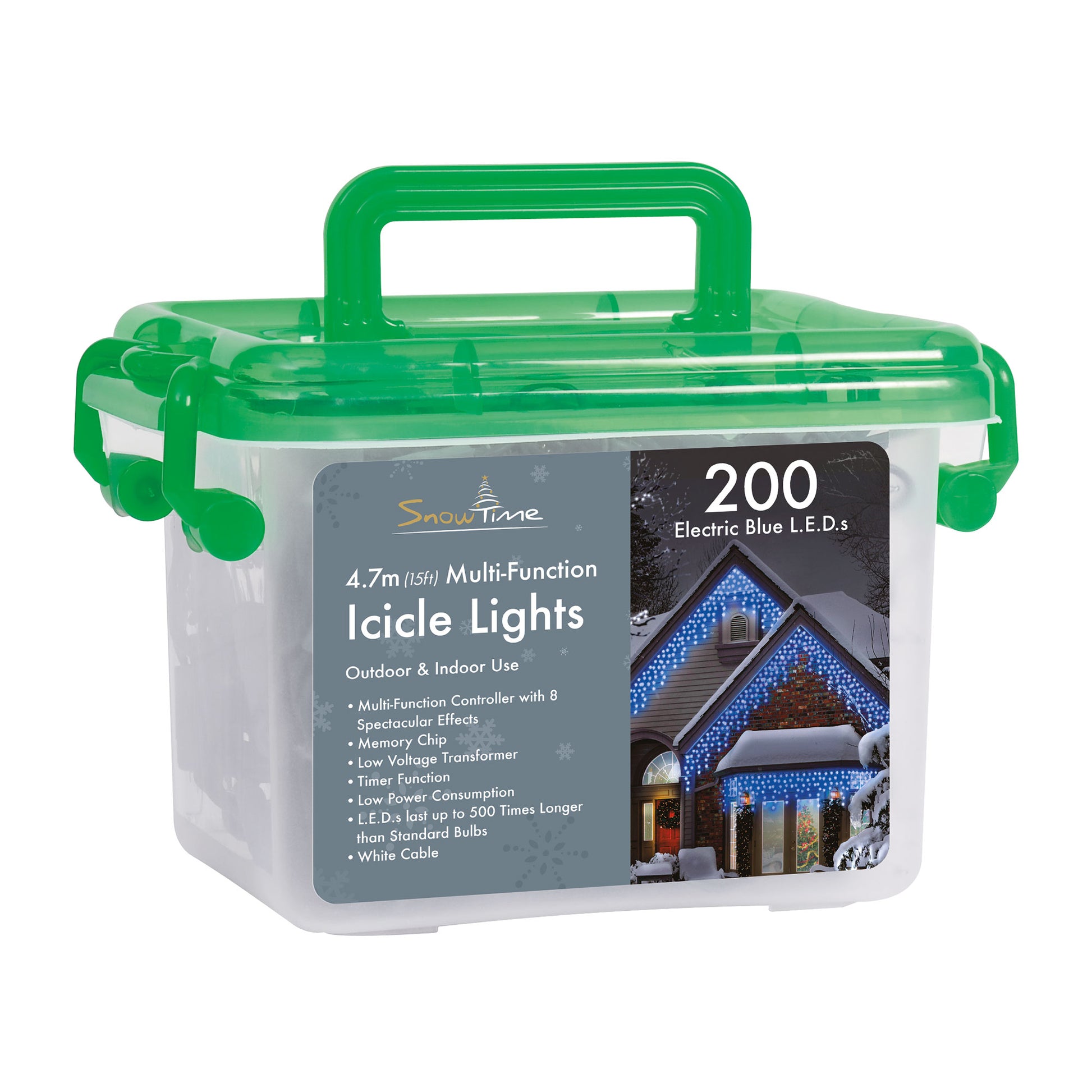 About 200 Blue LED Multi-Function Icicle Lights with Timer - 4.68m