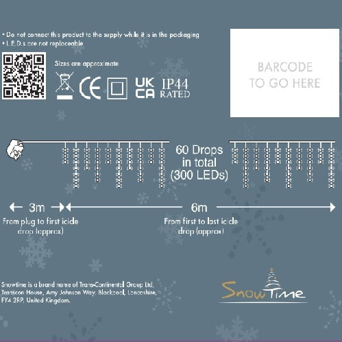 This 6-metre set features 300 warm white LEDs arranged in a classic icicle formation with 60 varying drop lengths to mimic a natural look. To create a beautiful, subtle shimmer, 30 of the bulbs gently flash at random amongst the 270 steady-on lights, producing a magical twinkling effect that is sure to impress.