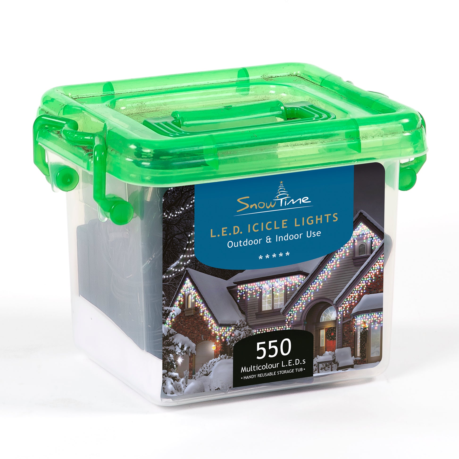 About 550 LED Icicle Lights with Timer & 8 Functions – (Ice White / Warm White / Multi-Colour)