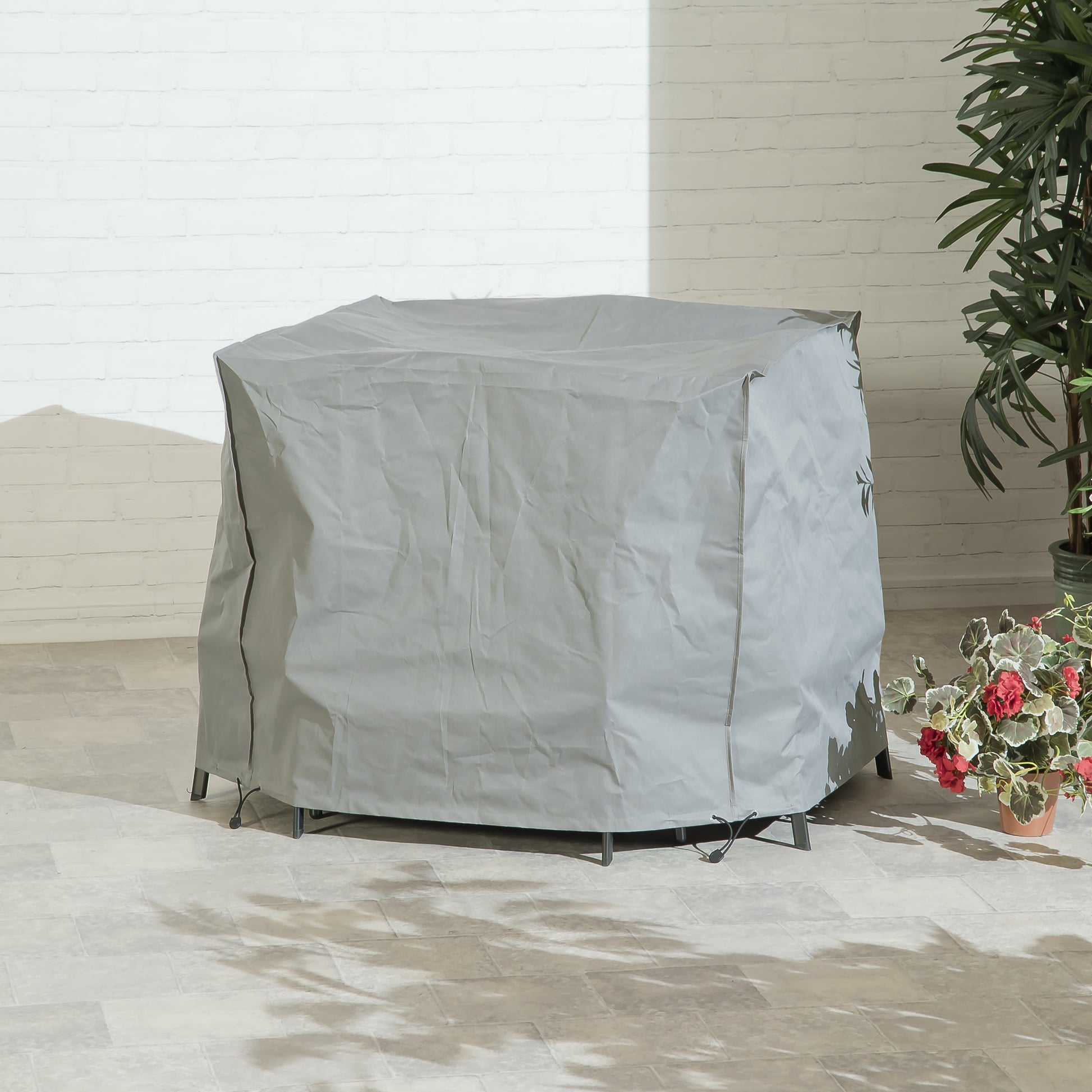 This Square Dining Cover is ideal for square sets up to 80cm, this cover is heavy duty ideal for protecting your bistro sets from rain, frost and wind. With next to no assembly this charcaol grey cover is ideal for protecting your furniture sets over the winter months and when the weather takes a turn for the worse.