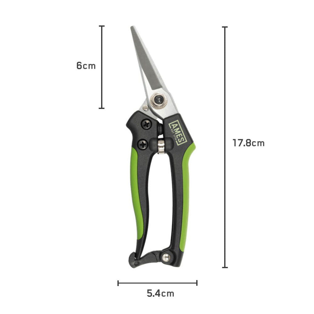 The Ames Precision Snips are specially designed for delicate tasks in gardening and floral arrangements. With soft grips and a rubber shock absorber, the snips provide comfort and wrist support. The precision tensioned blades and anti-stick grooves ensure smooth and precise cutting. Easily carried and stored with a hook grip locking catch.