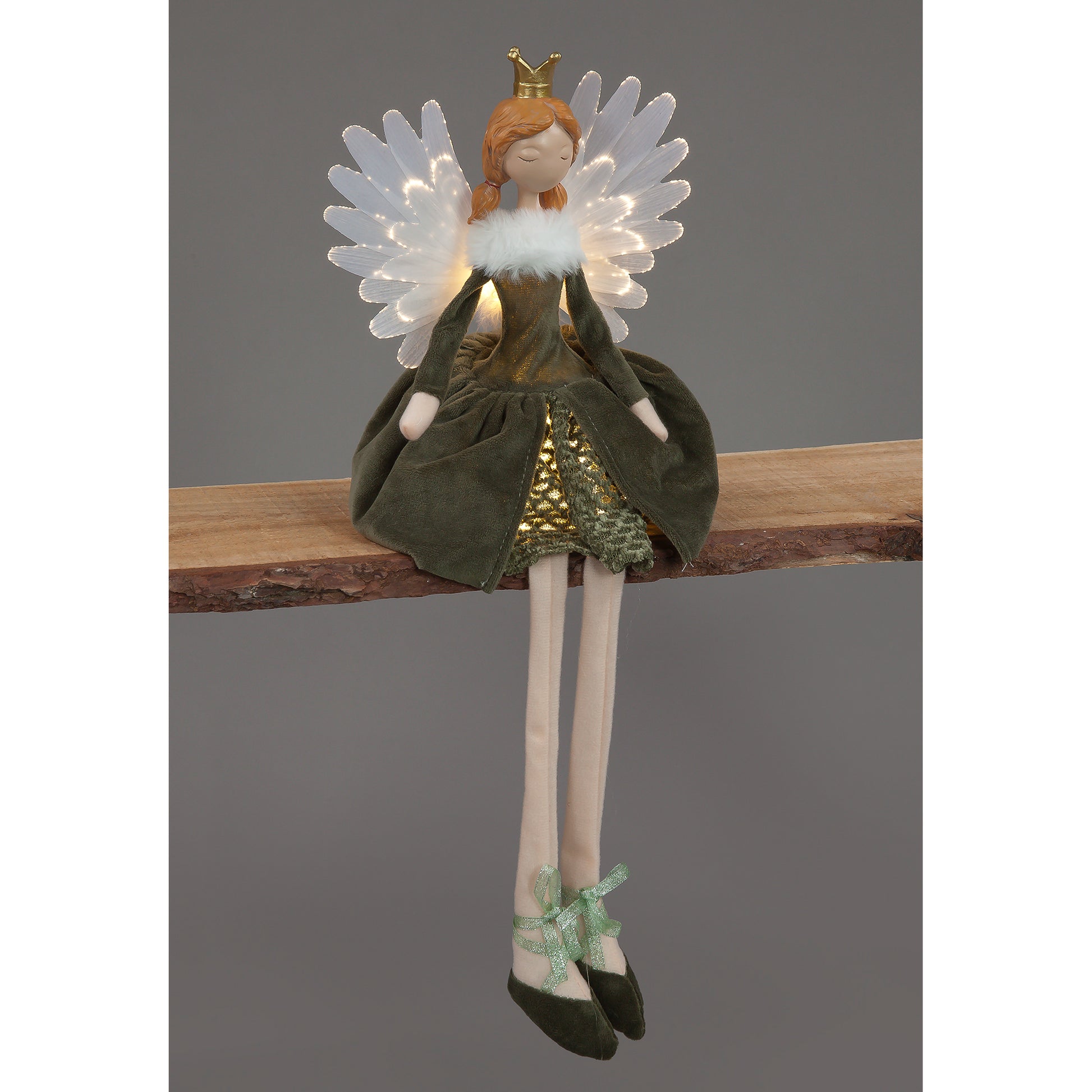 About 53cm Green Sitting Angel with Light-Up Feather Wings | Large LED Christmas Figure