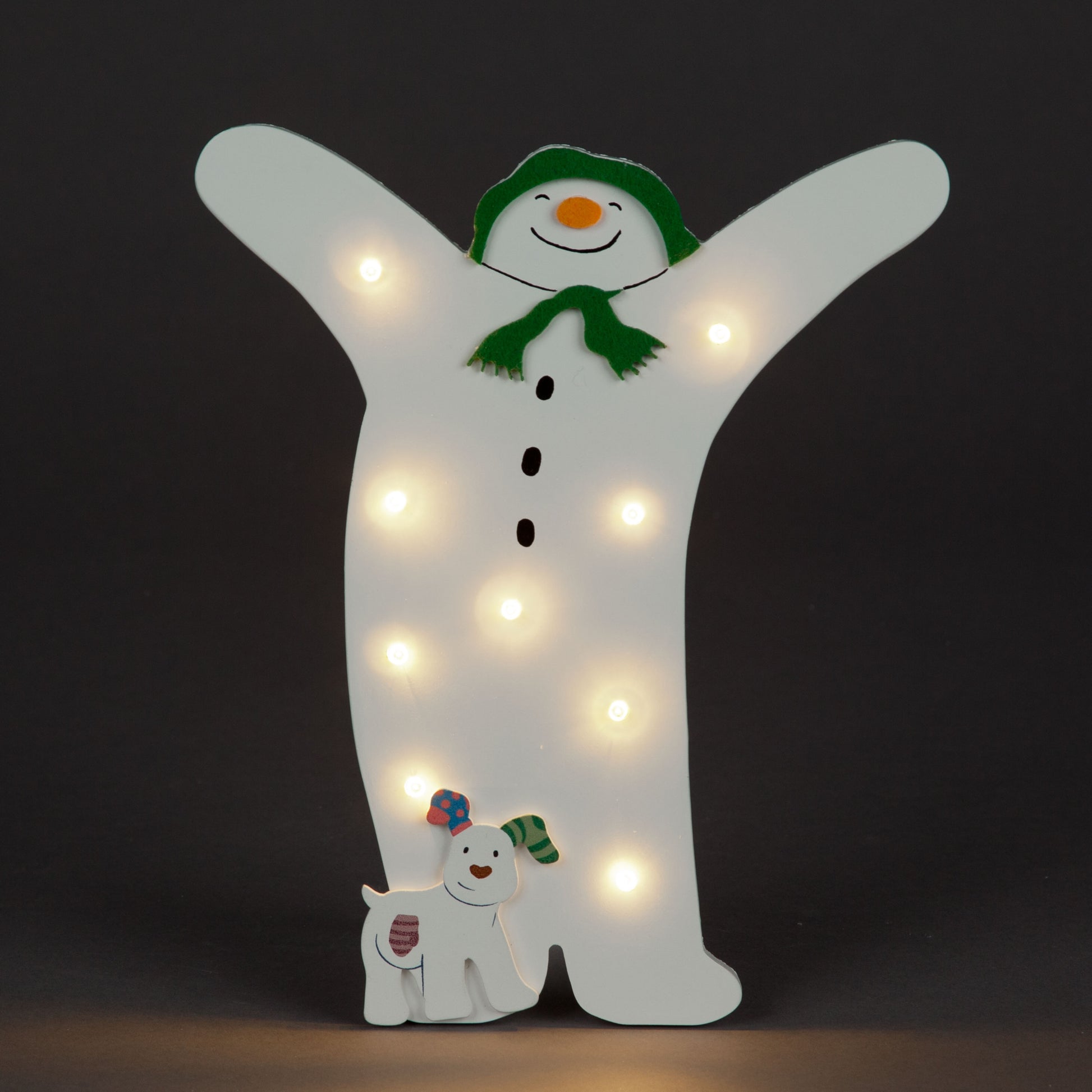 Grab your very own White Wood LED The Snowman and The Snowdog decoration today for Christmas 2023!