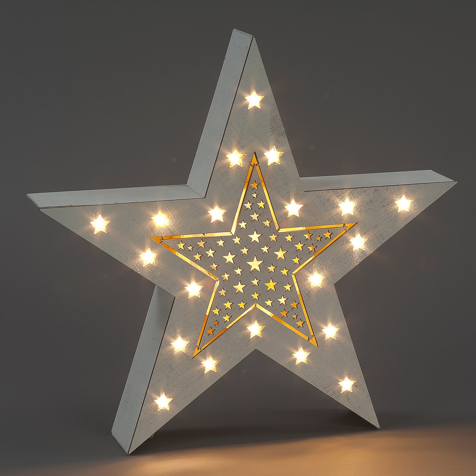 About Battery Operated Wooden White Washed Christmas Star (34cm)