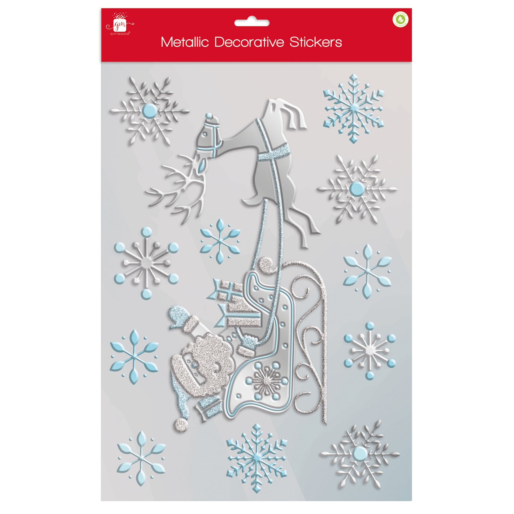 Add a festive sparkle to your holiday décor with these Blue & Silver Sticker Decorations. Featuring metallic stickers of Santa in his sleigh, reindeer, and delicate snowflakes, they bring a magical winter charm to windows, cards, or gifts. Easy to apply and remove, these decorative stickers create a captivating holiday atmosphere that delights all ages. Perfect for spreading seasonal cheer with shimmering blue and silver accents.
