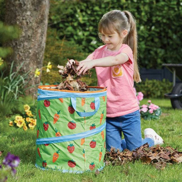 This Kids Spring Bin is the perfect gardening tool for young helpers. The pop up bin features fun vegetable designs and convenient carry handles, making it easy and enjoyable for children to assist in the garden. Measuring 45 x 35 cm in diameter, it's the ideal size for little hands to use.