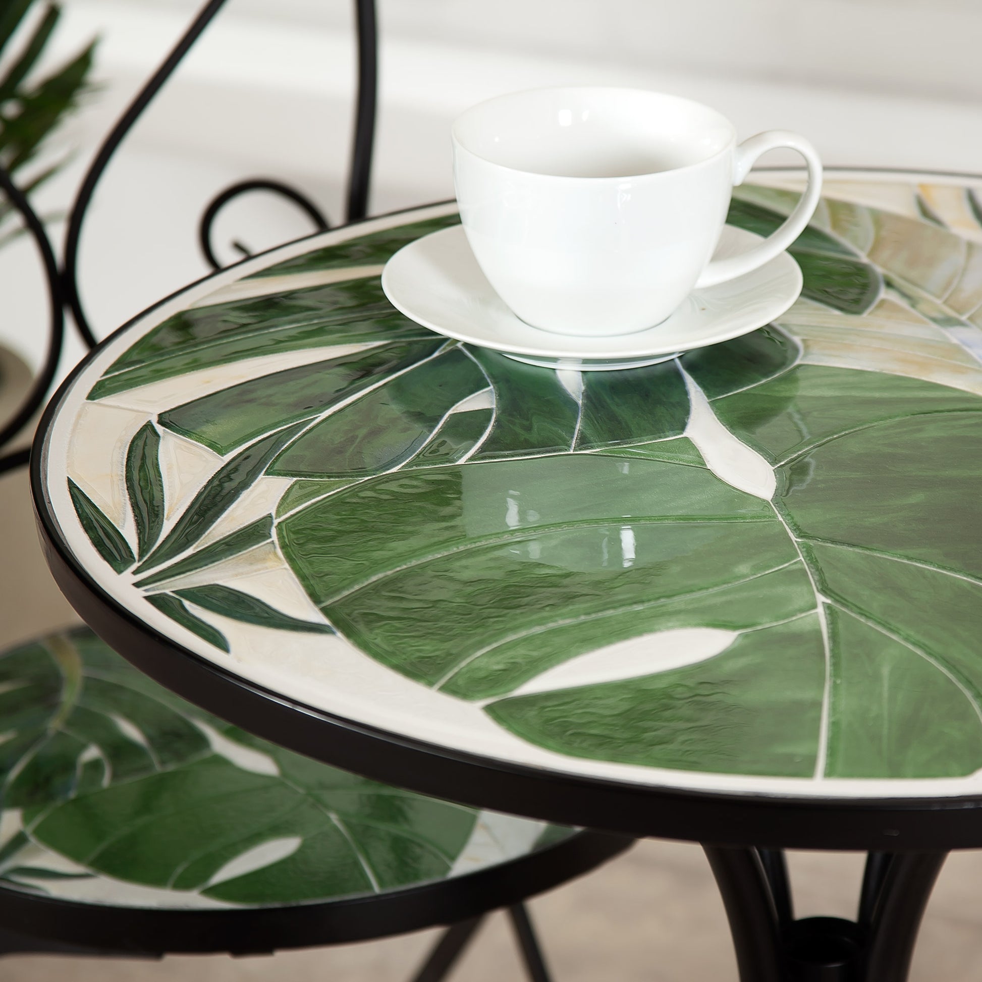 Looking for a stylish and functional addition to your garden? Look no further than the 60cm Mosaic Bistro Collection! This beautiful set includes a table and two chairs, all made with high-quality materials that will last for years to come. The set is made of durable cast iron. The mosaic tile top of the table adds a touch of elegance to the set, while the chairs are perfect for relaxing in the sun or enjoying a meal outdoors.