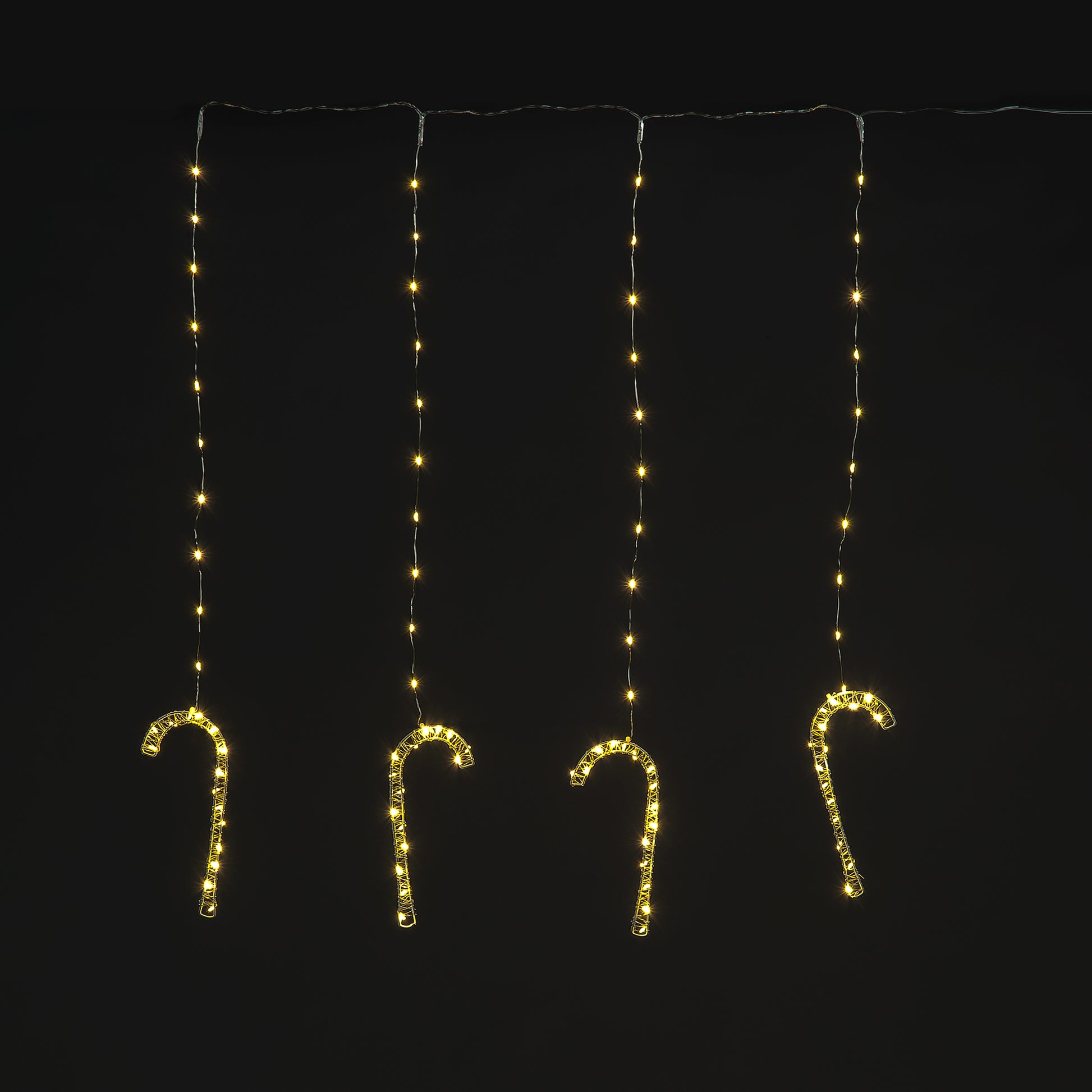 Our Copper Wire Candy Cane Curtain Lights are ideal for creating a perfect lighting display indoors. With the long cable, they can be put in any window with ease. Copper Wire Candy Cane Curtain Lights 100 Warm White LEDs